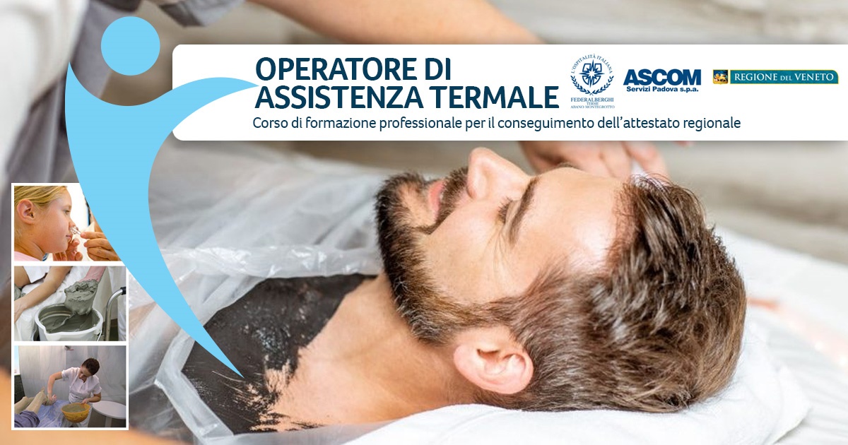 Questo percorso formativo, promosso dalla Regione Veneto in collaborazione con Federalberghi Terme Abano Montegrotto e Ascom Servizi Padova SPA, prevede 100 ore di lezioni pratiche di massoterapia termale, idrologia e fangobalneoterapia, 430 ore di lezioni teoriche e 470 ore di stage presso gli hotel termali.